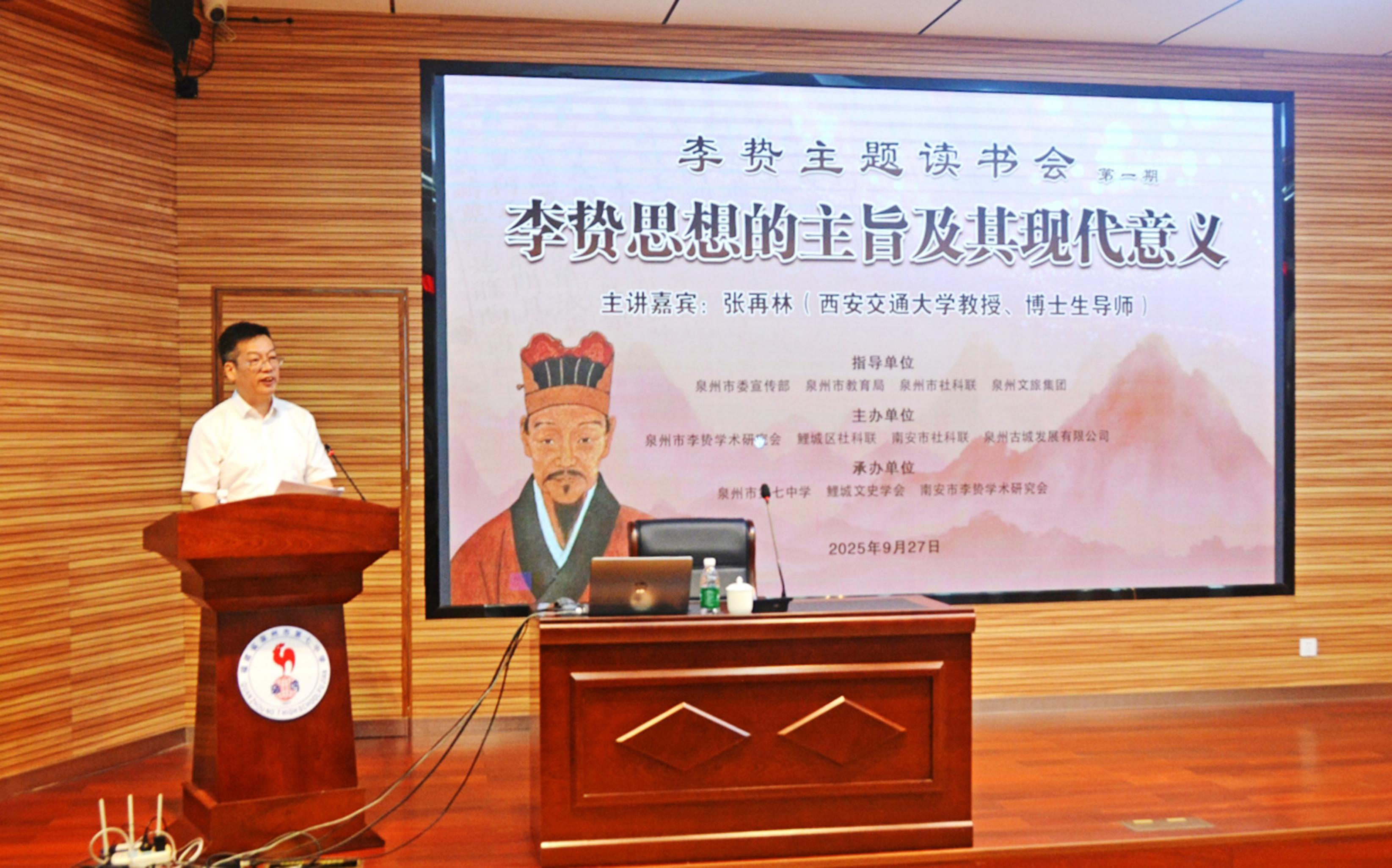 为深入挖掘李贽文化丰富内涵、当代价值和世界意义,传承弘扬历史文脉,丰富城市文化内涵,推动中华优秀传统文化的创造性转化、创新性发展,近日,泉州市开办“李贽主题读书会”,并于2025年9月27日在泉州市区李贽故居附近泉州市第七中学学术报告厅举办第一期活动。读书会由中共泉州市委宣传部、泉州市教育局、泉州市社科联、泉州市文旅集团指导,泉州市李贽学术研究会、鲤城区社科联、南安市社科联、泉州古城发展有限公司主办,泉州市第七中学、鲤城文史学会、南安市李贽学术研究会共同承办。