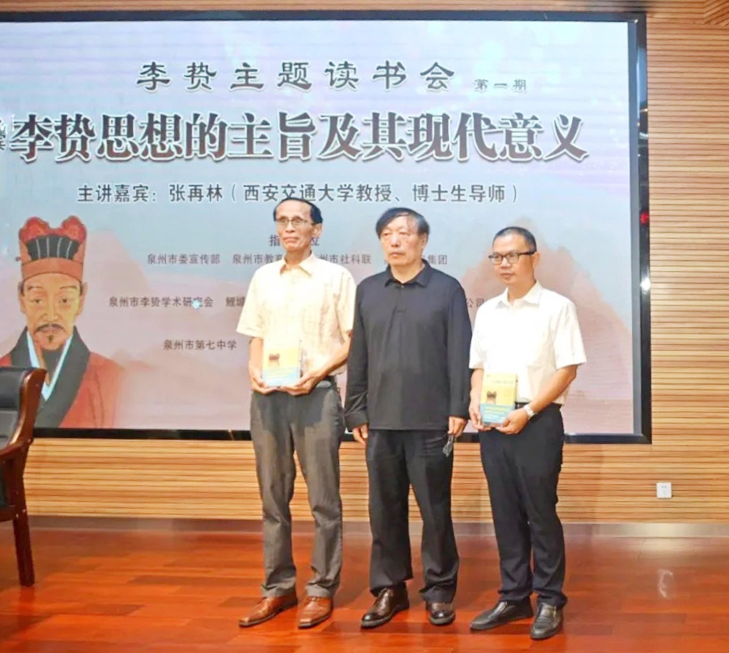 读书会上还举行聘书颁发和赠书仪式。泉州市李贽学术研究会聘请张再林教授为高级顾问;同时,张教授带来著作《车过麻城·再晤李贽》,分别赠送给泉州市李贽学术研究会卓吾书苑和筹设中的泉州李贽纪念馆收藏。