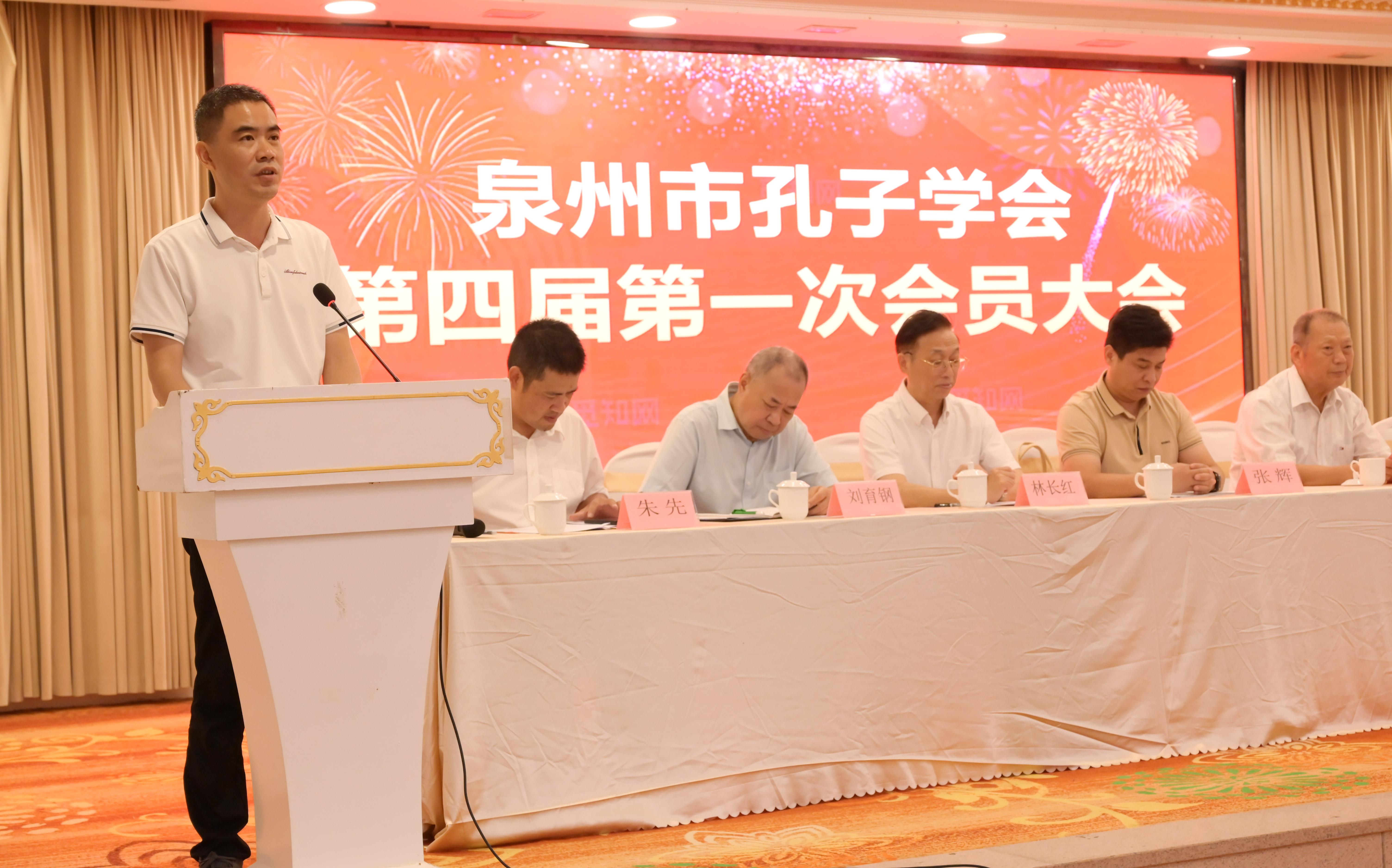 2025年9月27日,泉州市孔子学会第四届第一次会员大会在泉州湖美酒店举行。学会全体会员齐聚一堂,共同回顾学会发展历程、审议工作报告,并选举产生新一届领导班子,为泉州国学文化的传承与弘扬描绘新时代发展蓝图。本次大会由学会党支部书记洪辉煌主持。