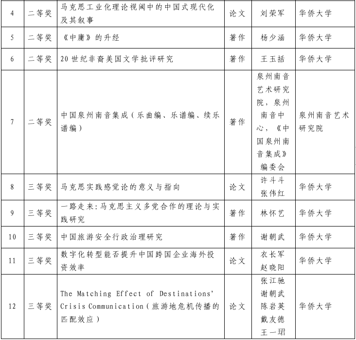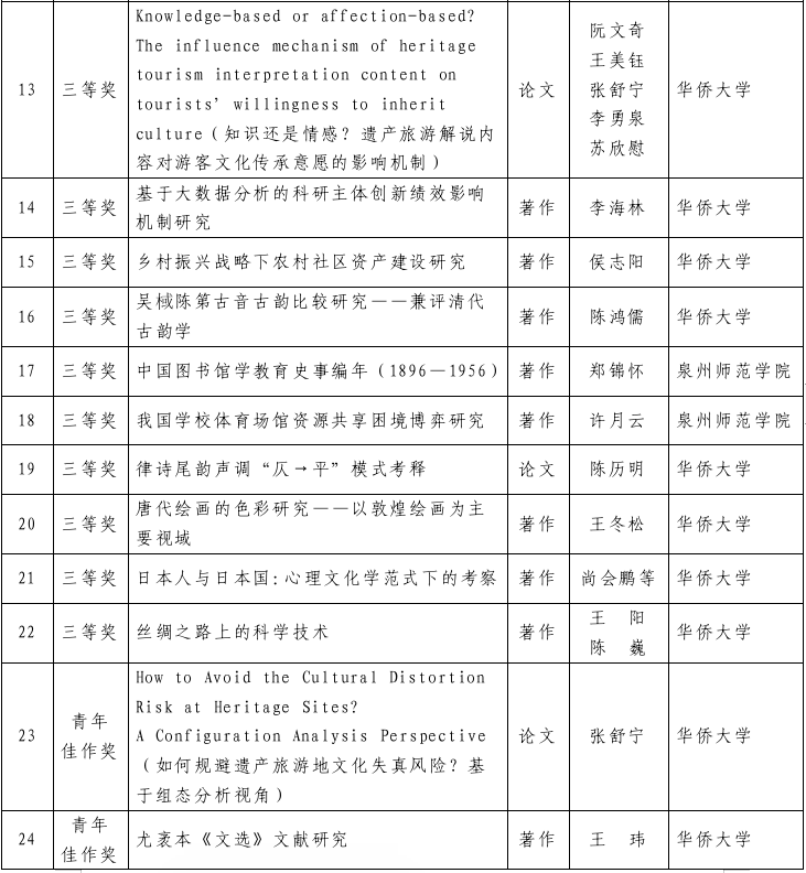 泉州市获省第十六届社会科学优秀成果奖名单