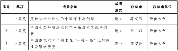 我市获奖的成果涉及多个学科,涵盖马列·科社,经济学,管理学,政治学,中国文学,语言学,新闻传播学,图书馆、情报与文献学,体育学,艺术学等,展示了我市哲学社会科学学科体系建设不断完善的新局面。相关成果的作者所在单位主要是华侨大学、泉州师范学院,体现了我市对重点院校给予支持产生的示范成效。